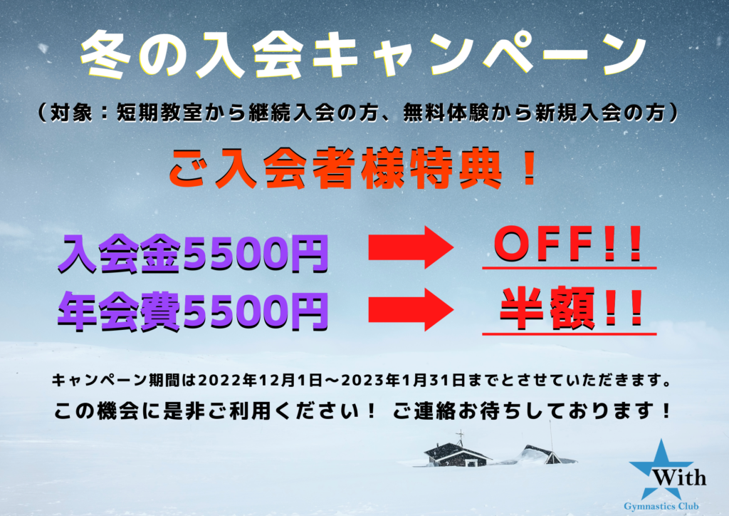 定期情報1月23日から1月29日までの練習の様子2023.01.29こんにちは!ウィズ体操クラブです!😉今週は雪もちらつく寒さでしたね😱今週の練習の様子です!国分寺店です!田無店です!寒い中、ご来館ありがとうございます!寒さが続く様なので風邪をひかない様に暖かくして、来てくださいね!お知らせです!キャンペーンは1月31日までのご体験の方対象となりますので、検討中の方はお早めに!ビックニュース!世田谷区喜多見、聖セシリア幼稚園にウィズ体操クラブがオープンします!!詳細は近日公開いたします!お楽しみに!! Tweet Share Hatena Pocket RSS feedly Pin it 1月17日から1月22日までの練習の様子前の記事 1月31日から2月5日までの練習の様子次の記事