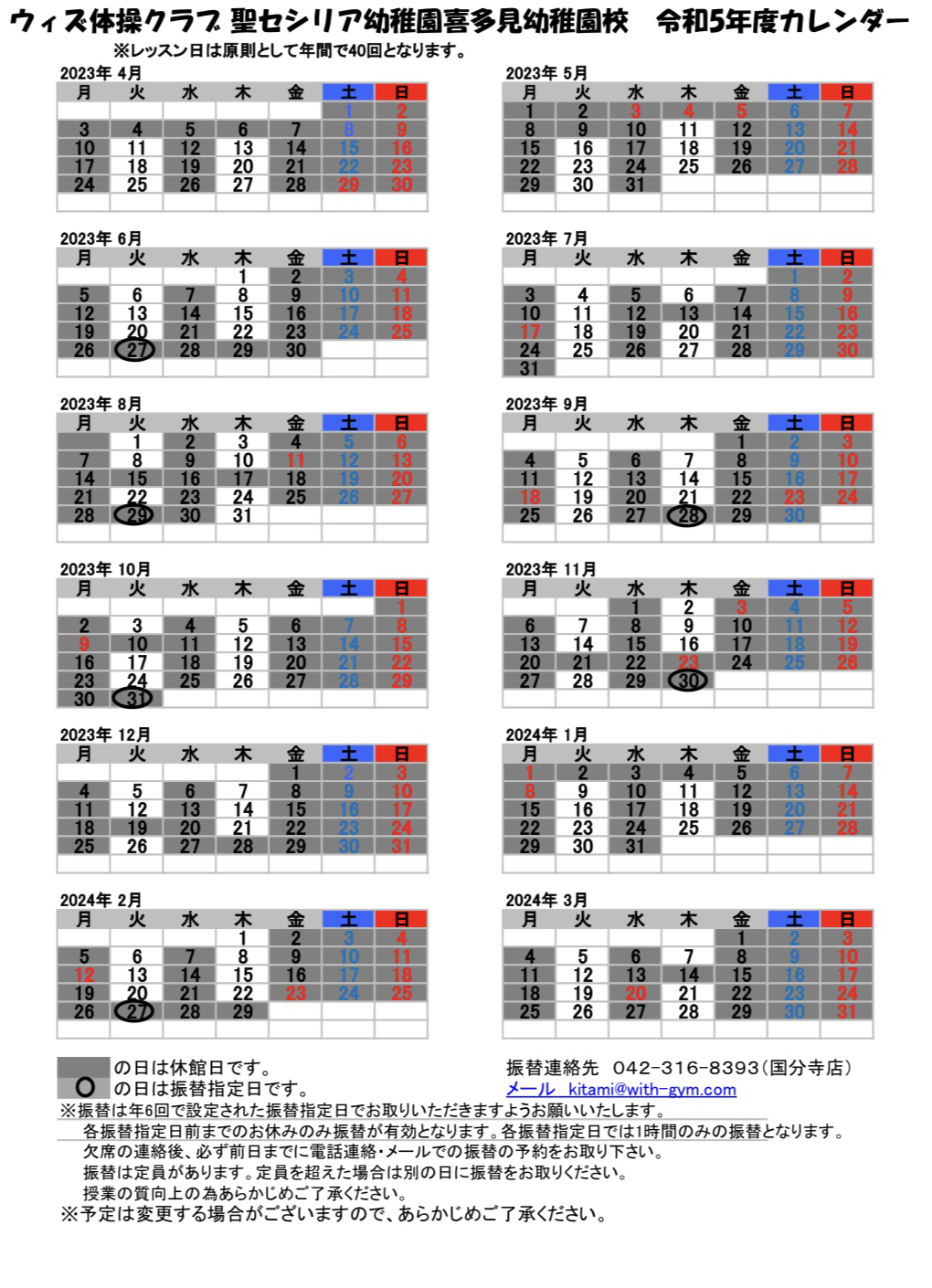 ※聖セシリア喜多見幼稚園在園生、卒園生は月会費の割引がございます。