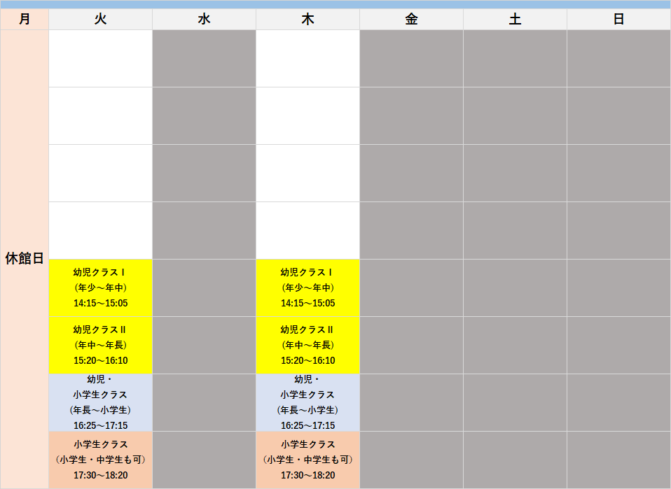 | 幼小(年中~小学校低学年) | 週1回:6,100円 (税抜) + 税 |