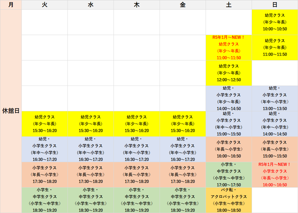 | 幼児(年少~) | 週1回:6,800円 (税抜) + 税 |